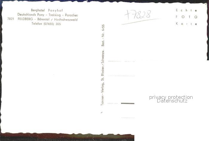 41812103 Feldberg Schwarzwald Berghotel Ponyhof Pony postalisch nicht gelaufen Erhaltung siehe scans KatCode: 11110008315037