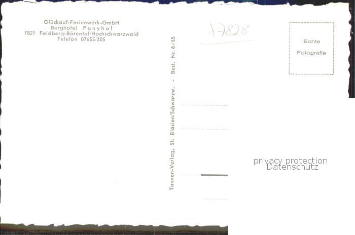 41812106 Feldberg Schwarzwald Berghotel Ponyhof Pony postalisch nicht gelaufen Erhaltung siehe scans KatCode: 11110008315037