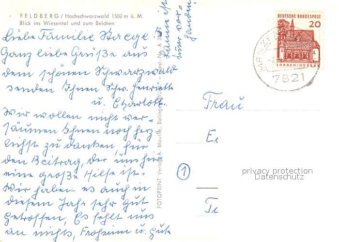 73512356 alte Postkarte Feldberg Schwarzwald Blick ins Wiesental und zum Belchen postalisch gelaufen Erhaltung siehe scans [WerneD78] KatCode: 11110008315037