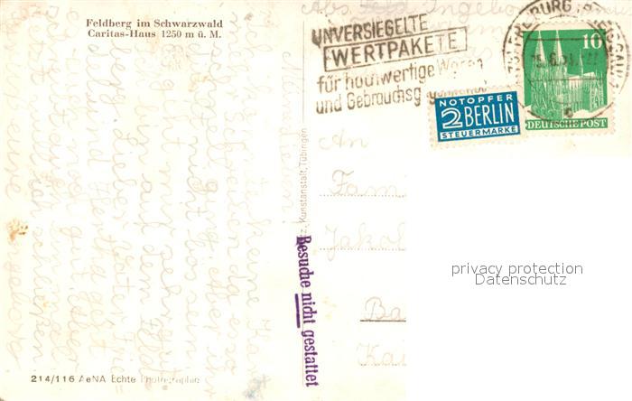 73118147 alte Postkarte Feldberg Schwarzwald Caritas Haus postalisch gelaufen Erhaltung siehe scans [KathaD81] KatCode: 11110008315037
