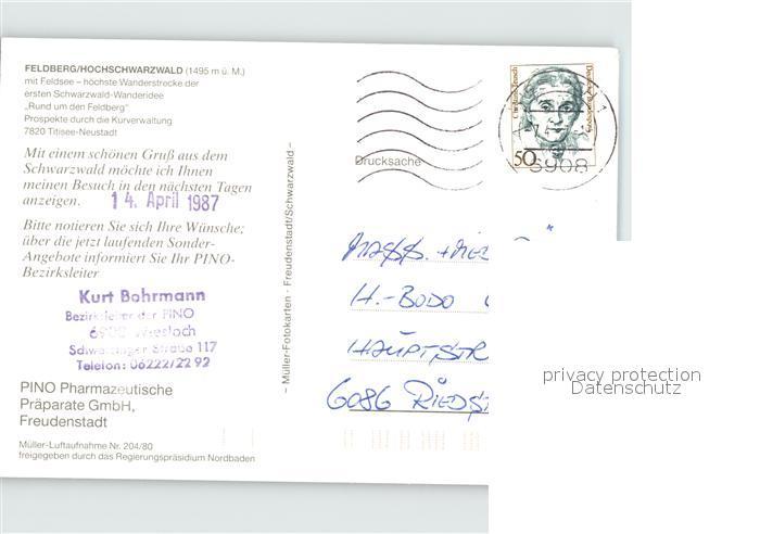 72431817 alte Postkarte Feldberg Schwarzwald Feldsee postalisch gelaufen Erhaltung siehe scans KatCode: 11110008315037
