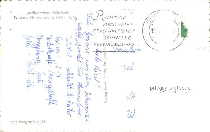 72198720 alte Postkarte Feldberg Schwarzwald Feldsee Sessel- Lift Jugendherberge Hebelhof postalisch gelaufen Erhaltung siehe scans KatCode: 11110008315037
