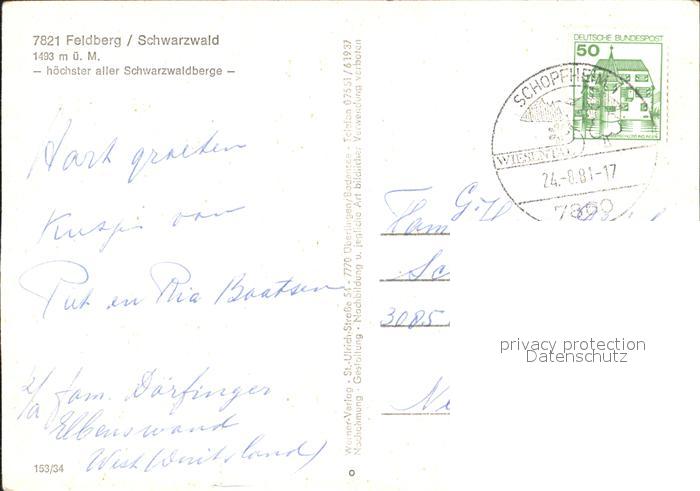 72255276 alte Postkarte Feldberg Schwarzwald Fliegeraufnahme postalisch gelaufen Erhaltung siehe scans KatCode: 11110008315037