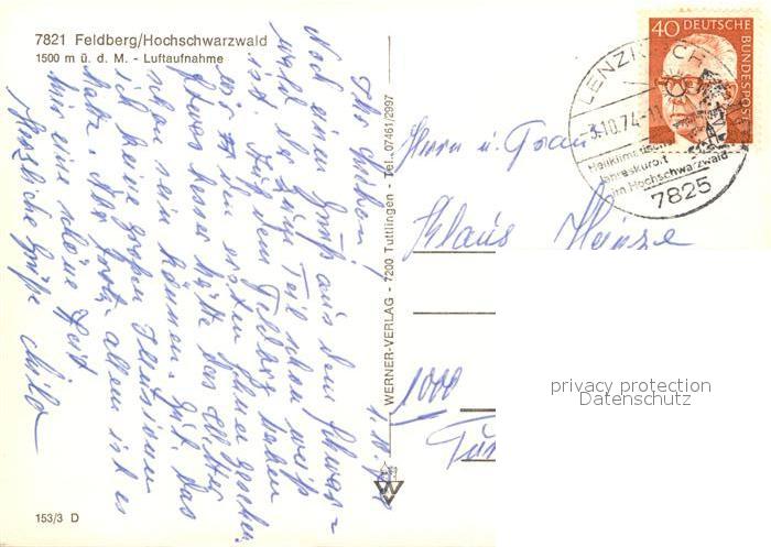 73163680 alte Postkarte Feldberg Schwarzwald Fliegeraufnahme postalisch gelaufen Erhaltung siehe scans [FriedD77] KatCode: 11110008315037