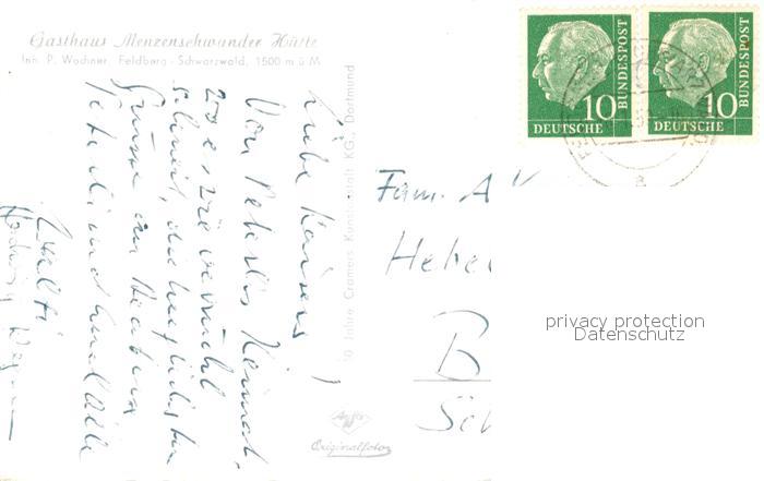 73162704 alte Postkarte Feldberg Schwarzwald Gasthaus Menzenschwander Hoehe postalisch gelaufen Erhaltung siehe scans [KathaD81] KatCode: 11110008315037