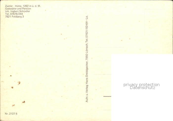 72609723 Feldberg Schwarzwald Gasthaus Zastler-Huette postalisch nicht gelaufen Erhaltung siehe scans [LiesaD40] KatCode: 11110008315037