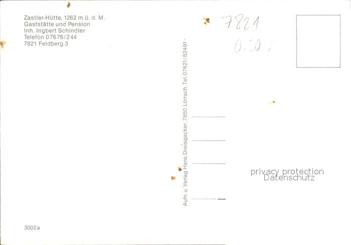 72417500 Feldberg Schwarzwald Gasthaus Zastler Huette postalisch nicht gelaufen Erhaltung siehe scans KatCode: 11110008315037
