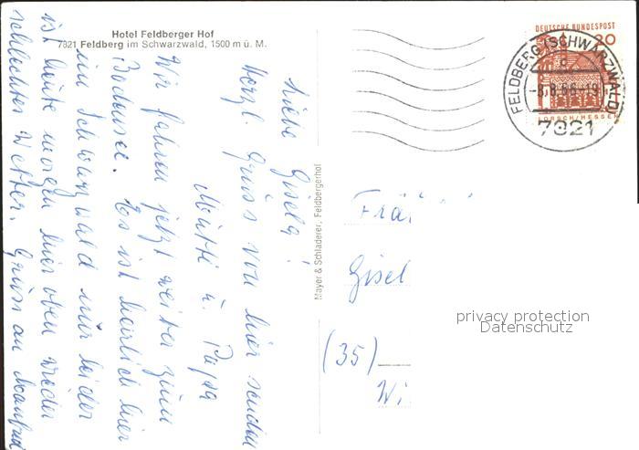 72165667 alte Postkarte Feldberg Schwarzwald Hotel Feldberger Hof Bismarckdenkmal Turm Wiesental Feldsee Lift Baerental Titisee postalisch gelaufen Erhaltung siehe scans KatCode: 11110008315037