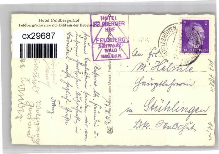 30924066 alte Postkarte Feldberg Schwarzwald Hotel Feldbergerhof postalisch gelaufen KatCode: 11110008315037