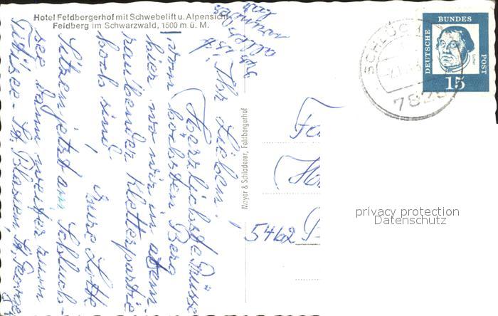 71983659 alte Postkarte Feldberg Schwarzwald Hotel Feldbergerhof Schwebelift Alpenpanorama postalisch gelaufen Erhaltung siehe scans KatCode: 11110008315037