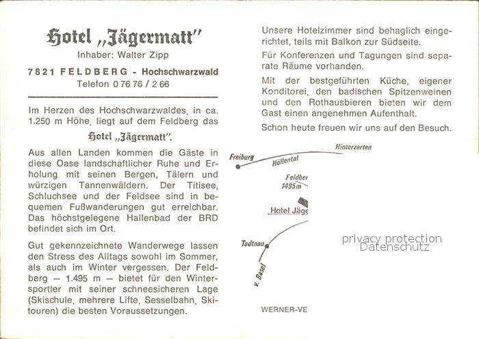 71931222 Feldberg Schwarzwald Hotel Jaegermatt postalisch nicht gelaufen Werbekarte (keine Postkarte) Erhaltung siehe scans KatCode: 11110008315037