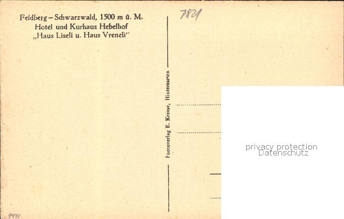 71906694 Feldberg Schwarzwald Hotel und Kurhaus Hebelhof postalisch nicht gelaufen Erhaltung siehe scans KatCode: 11110008315037