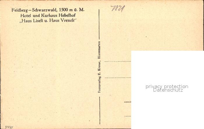 71906693 Feldberg Schwarzwald Hotel und Kurhaus Hebelhof postalisch nicht gelaufen Erhaltung siehe scans KatCode: 11110008315037