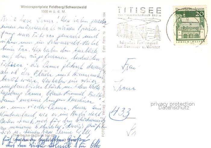 73309978 alte Postkarte Feldberg Schwarzwald im Winter Fliegeraufnahme postalisch gelaufen Erhaltung siehe scans [FriedD77] KatCode: 11110008315037
