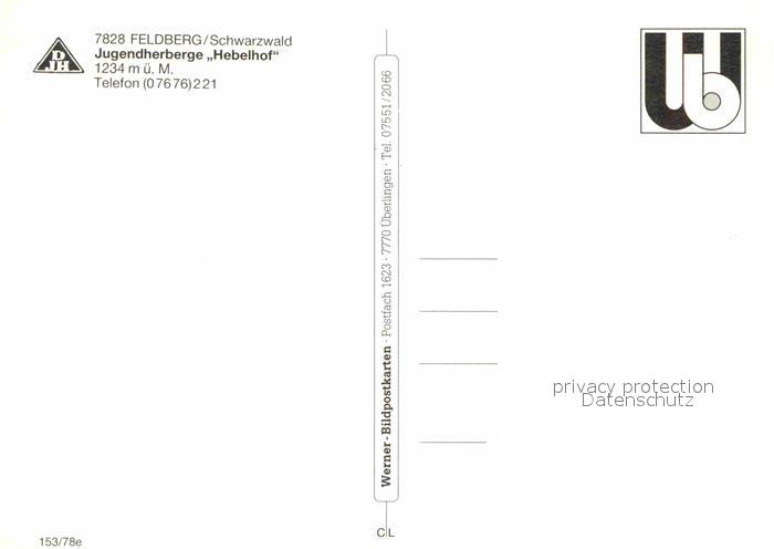 72901423 Feldberg Schwarzwald Jugendherberge Hebelhof postalisch nicht gelaufen Erhaltung siehe scans [NatalD47] KatCode: 11110008315037