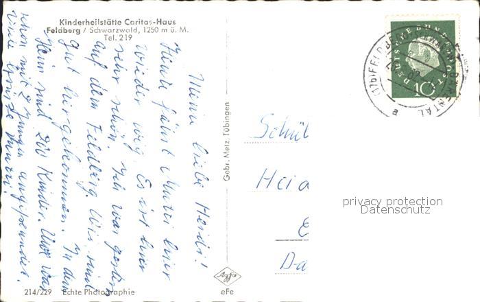 72075764 alte Postkarte Feldberg Schwarzwald Kinderheilstaette Caritas Haus postalisch gelaufen Erhaltung siehe scans KatCode: 11110008315037