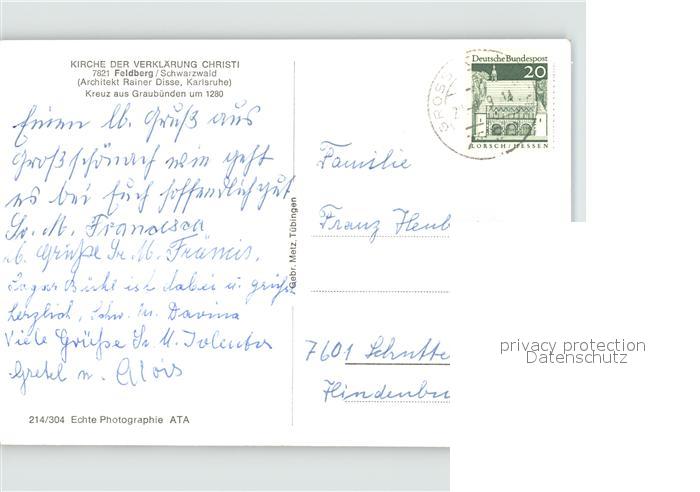 71900399 alte Postkarte Feldberg Schwarzwald Kirche der Verklaerung Christi postalisch gelaufen Erhaltung siehe scans KatCode: 11110008315037