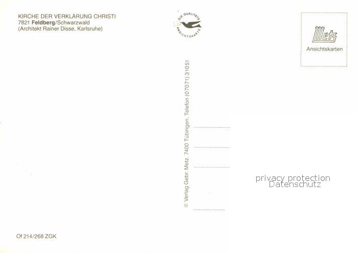 72711999 Feldberg Schwarzwald Kirche der Verklaerung Christi Architekt Rainer Disse postalisch nicht gelaufen Erhaltung siehe scans [FriedD77] KatCode: 11110008315037