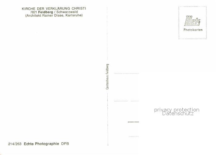 72688018 Feldberg Schwarzwald Kirche der Verklaerung Christi Architekt Rainer Disse postalisch nicht gelaufen Erhaltung siehe scans [FriedD77] KatCode: 11110008315037