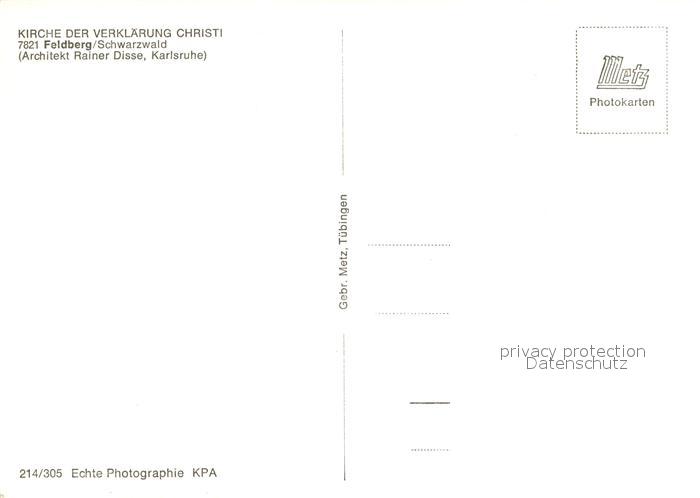 72985589 Feldberg Schwarzwald Kirche der Verklaerung Christi Architekt Rainer Disse postalisch nicht gelaufen Erhaltung siehe scans [FriedD77] KatCode: 11110008315037