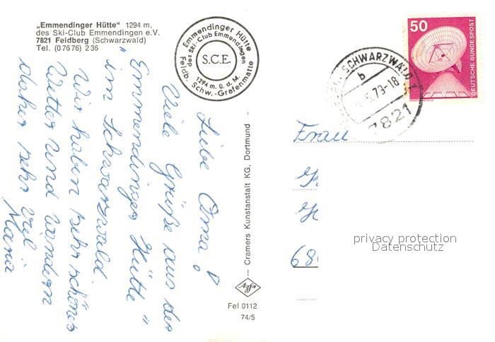 73070665 alte Postkarte Feldberg Schwarzwald Kirche Sesselbahn Panorama Wiesental Fernsehturm Emmendinger Huette Feldbergpass Feldsee Hotel Feldberger Hof postalisch gelaufen Erhaltung siehe scans [FriedD77] KatCode: 11110008315037