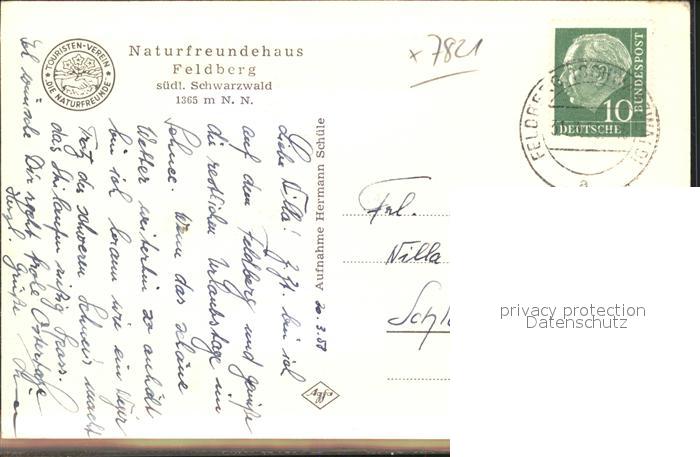 41790236 alte Postkarte Feldberg Schwarzwald Naturfreundehaus postalisch gelaufen Erhaltung siehe scans KatCode: 11110008315037
