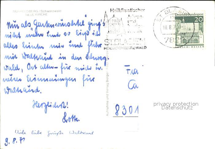 72503953 alte Postkarte Feldberg Schwarzwald Neue Kirche postalisch gelaufen Erhaltung siehe scans KatCode: 11110008315037