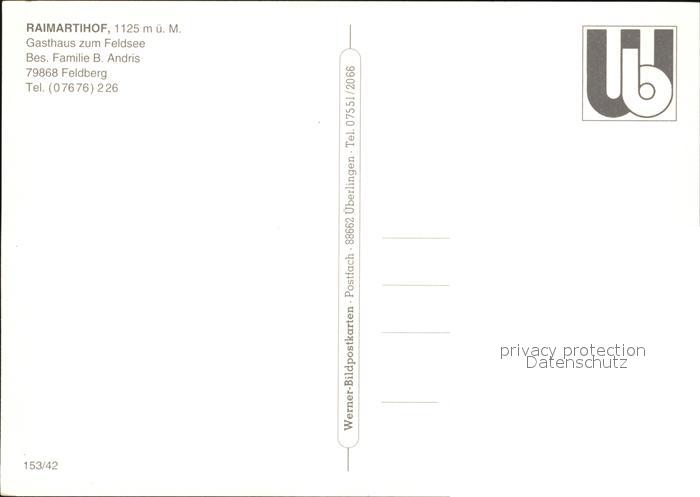 72522471 Feldberg Schwarzwald Raimartihof Gasthaus zum Feldsee postalisch nicht gelaufen Erhaltung siehe scans KatCode: 11110008315037