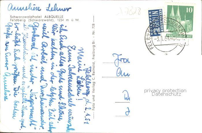 41811446 alte Postkarte Feldberg Schwarzwald Schwarzwaldhotel Albquelle postalisch gelaufen Erhaltung siehe scans KatCode: 11110008315037