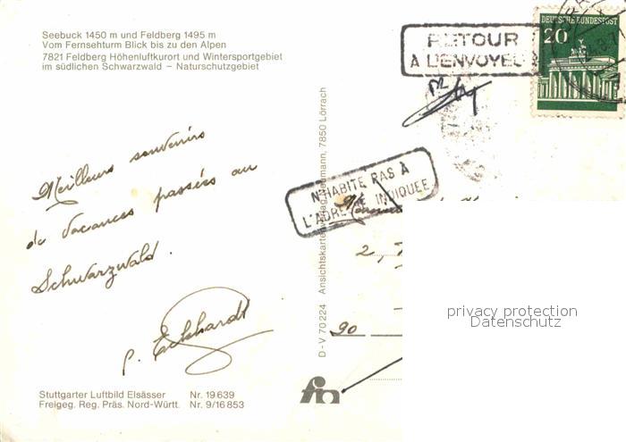 72673478 alte Postkarte Feldberg Schwarzwald Seebuck und Feldberg vom Fernsehturm Blick bis zu den Alpen postalisch gelaufen Erhaltung siehe scans [FriedD77] KatCode: 11110008315037