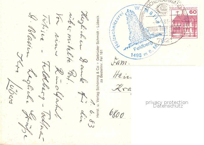 72706775 alte Postkarte Feldberg Schwarzwald Sessellift Bismarckturm Hotel postalisch gelaufen Erhaltung siehe scans [AndreD76] KatCode: 11110008315037
