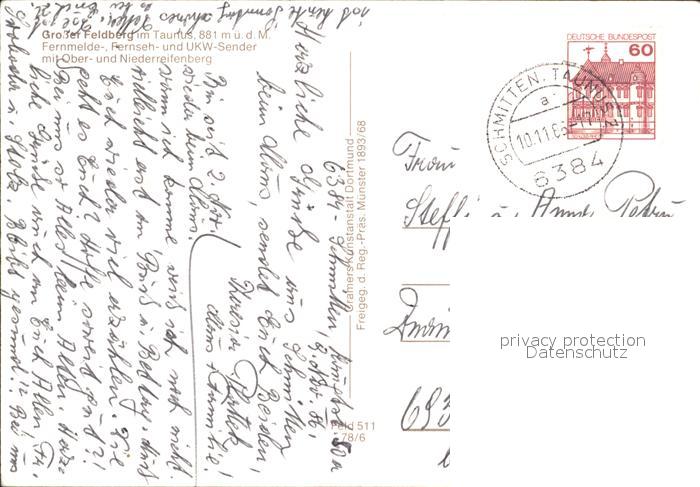 72112667 alte Postkarte Feldberg Taunus Fernseh-Turm Fliegeraufnahme postalisch gelaufen Erhaltung siehe scans KatCode: 11110006434009
