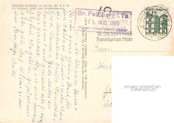 72832440 alte Postkarte Feldberg Taunus Fernseh- UKW- Fernmeldeturm postalisch gelaufen Erhaltung siehe scans [NatalD47] KatCode: 11110006434009