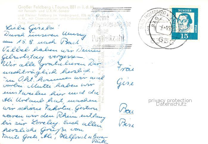 73093920 alte Postkarte Feldberg Taunus Fernseh UKW Sender postalisch gelaufen Erhaltung siehe scans [KathaD81] KatCode: 11110006434009