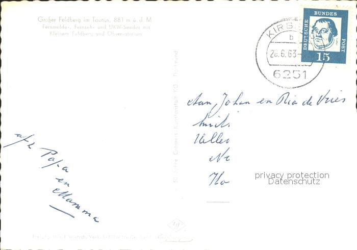 72174011 alte Postkarte Feldberg Taunus Fliegeraufnahme postalisch gelaufen Erhaltung siehe scans KatCode: 11110006434009