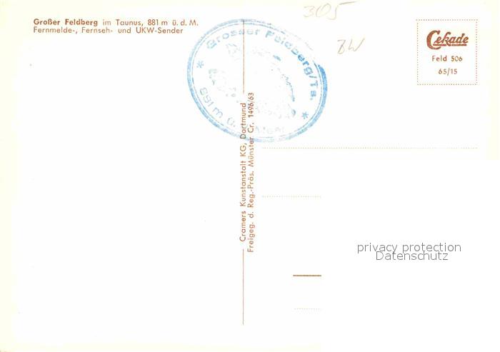 72792330 Feldberg Taunus Fliegeraufnahme mit Sendetuermen postalisch nicht gelaufen Erhaltung siehe scans [LiesaD40] KatCode: 11110006434009