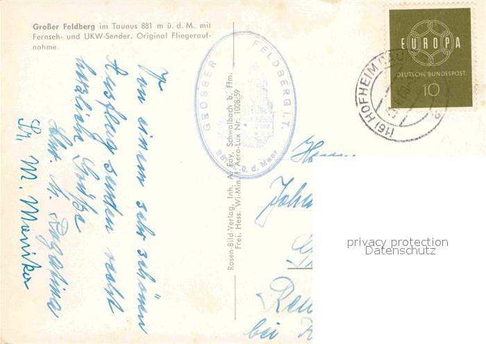 72758131 alte Postkarte Feldberg Taunus Fliegeraufnahme Sendetuerme postalisch gelaufen Erhaltung siehe scans [LiesaD40] KatCode: 11110006434009
