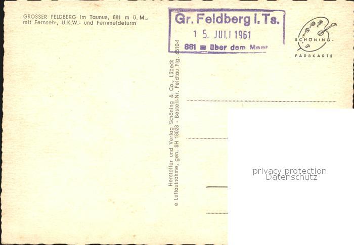 72417461 Feldberg Taunus mit Sendetuermen postalisch nicht gelaufen Erhaltung siehe scans KatCode: 11110006434009