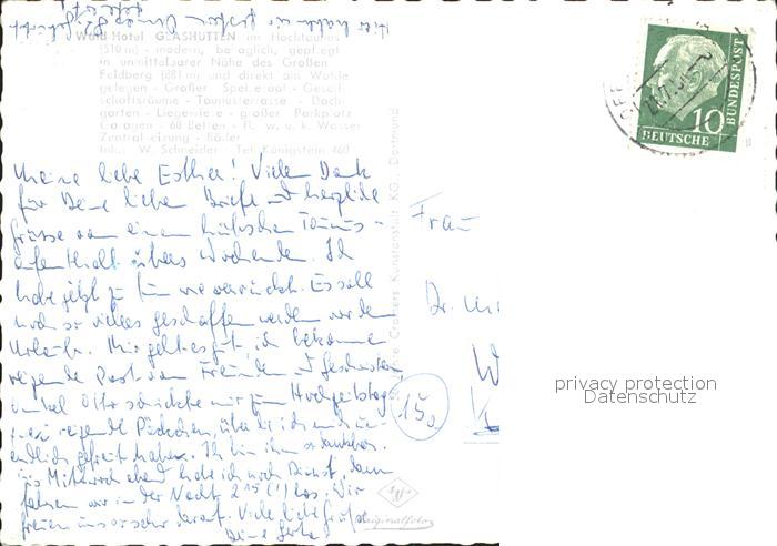 72389827 alte Postkarte Feldberg Taunus Waldhotel Glashuetten postalisch gelaufen Erhaltung siehe scans KatCode: 11110006434009