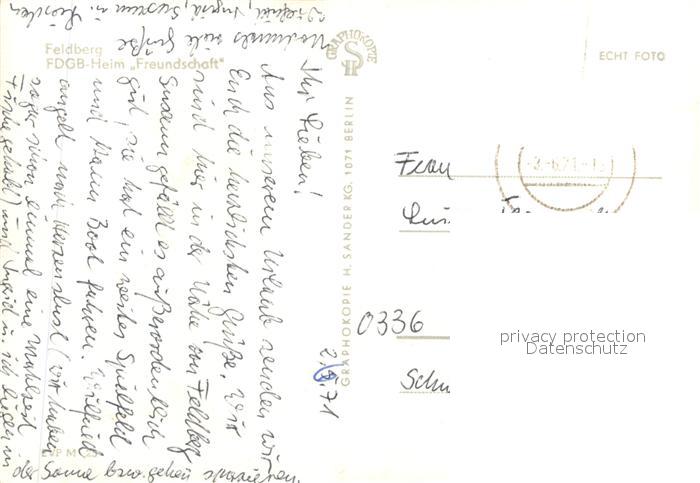 72951632 alte Postkarte Feldberger Seenlandschaft FDGB Heim Freundschaft postalisch gelaufen Erhaltung siehe scans [FriedD77] KatCode: 11110013055082