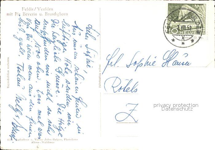 11634153 alte Postkarte Feldis GR mit Piz-Beverin und Bruchshorn postalisch gelaufen Erhaltung siehe scans KatCode: 11470100315044