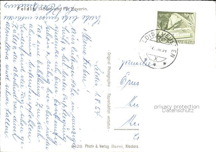 11647818 alte Postkarte Feldis GR Panorama mit Piz Beverin postalisch gelaufen Erhaltung siehe scans KatCode: 11470100315044