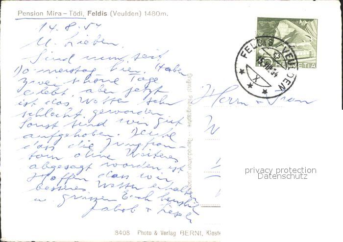 11634159 alte Postkarte Feldis GR Pension Mira postalisch gelaufen Erhaltung siehe scans KatCode: 11470100315044