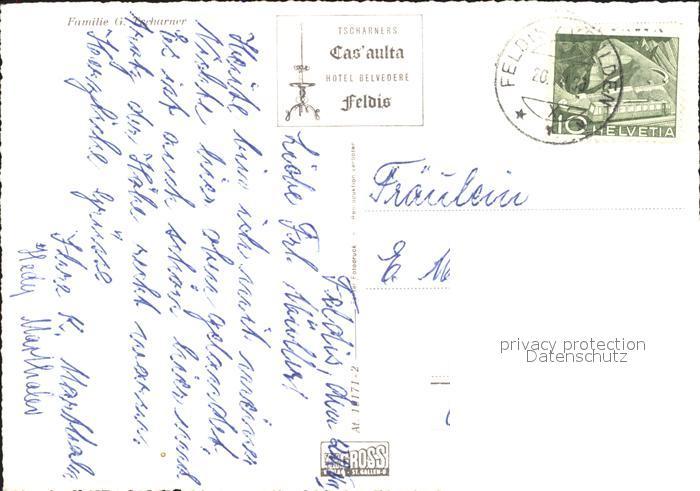 11634142 alte Postkarte Feldis GR Tscharner Cas`aulta Restaurant postalisch gelaufen Erhaltung siehe scans KatCode: 11470100315044