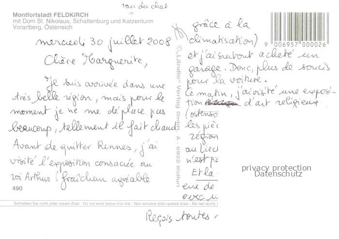74009733 Feldkirch Vorarlberg AT mit Dom St Nikolaus Schattenburg und Katzenturm postalisch nicht gelaufen Erhaltung siehe scans [WerneD78] KatCode: 11390342080404