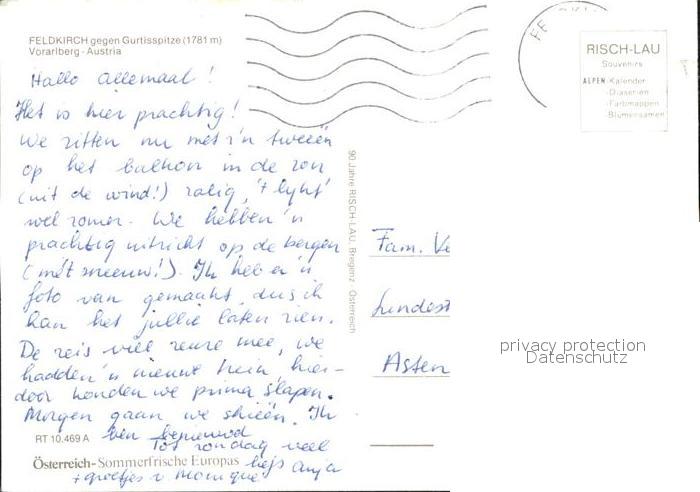 72429815 alte Postkarte Feldkirch Vorarlberg Teilansicht mit Gurtisspitze postalisch gelaufen Erhaltung siehe scans KatCode: 11390342080404
