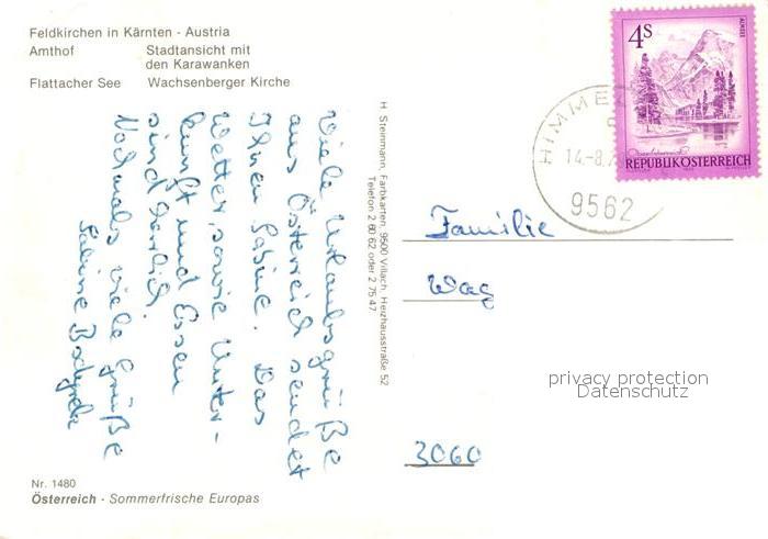 72991595 alte Postkarte Feldkirchen Kaernten Amthof Karawanken Wachsenbirger Kirche postalisch gelaufen Erhaltung siehe scans [LiesaD40] KatCode: 11390212021002