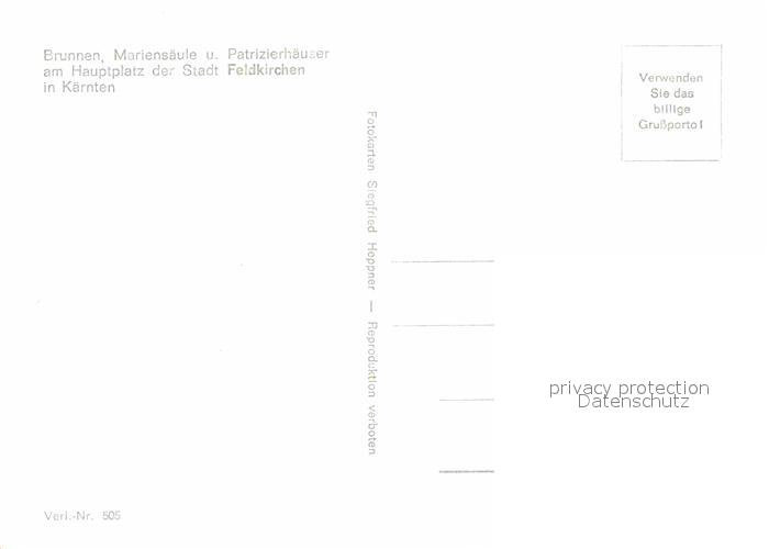 72666695 Feldkirchen Kaernten Brunnen Mariensaeule Patrizierhaeuser am Hauptplatz postalisch nicht gelaufen Erhaltung siehe scans [FriedD77] KatCode: 11390212021002