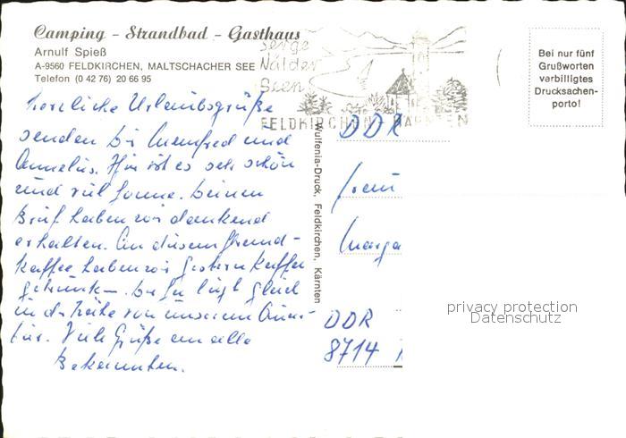 72496626 alte Postkarte Feldkirchen Kaernten Camping Strandbad Gasthaus Maltschacher See postalisch gelaufen Erhaltung siehe scans KatCode: 11390212021002