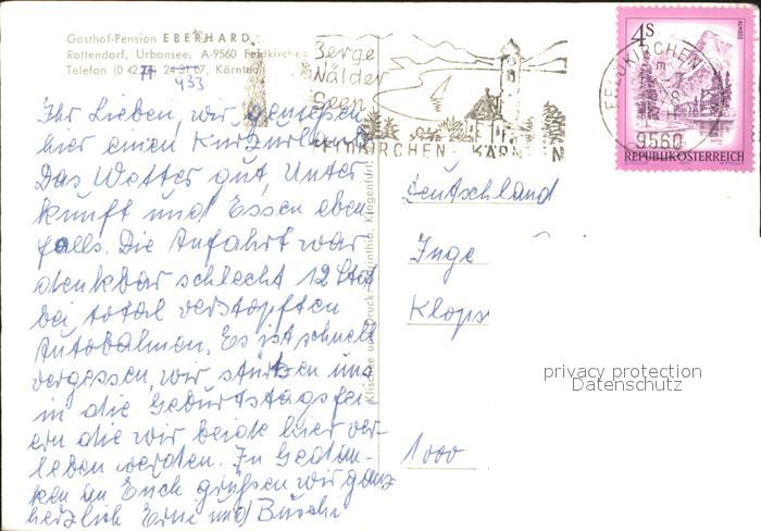 71901816 alte Postkarte Feldkirchen Kaernten Gasthaus Pension Eberhard postalisch gelaufen Erhaltung siehe scans KatCode: 11390212021002